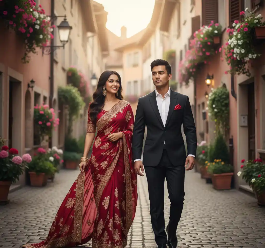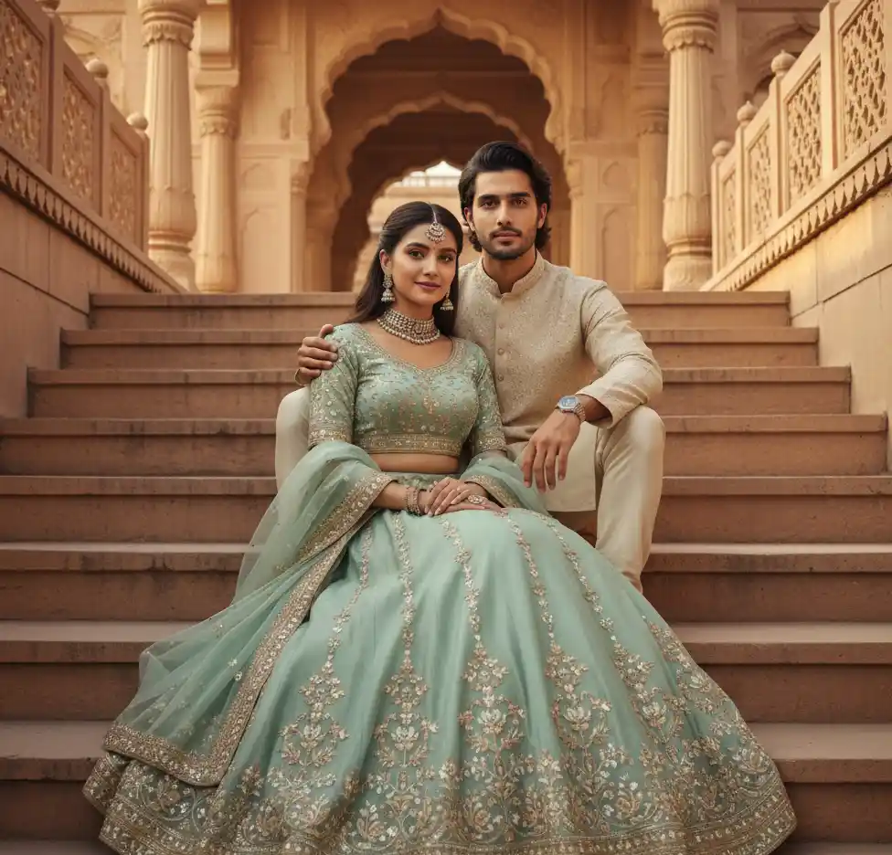 Absolutely. Our India gallery includes majestic palace backgrounds from Jaipur and Udaipur for a royal couple look.